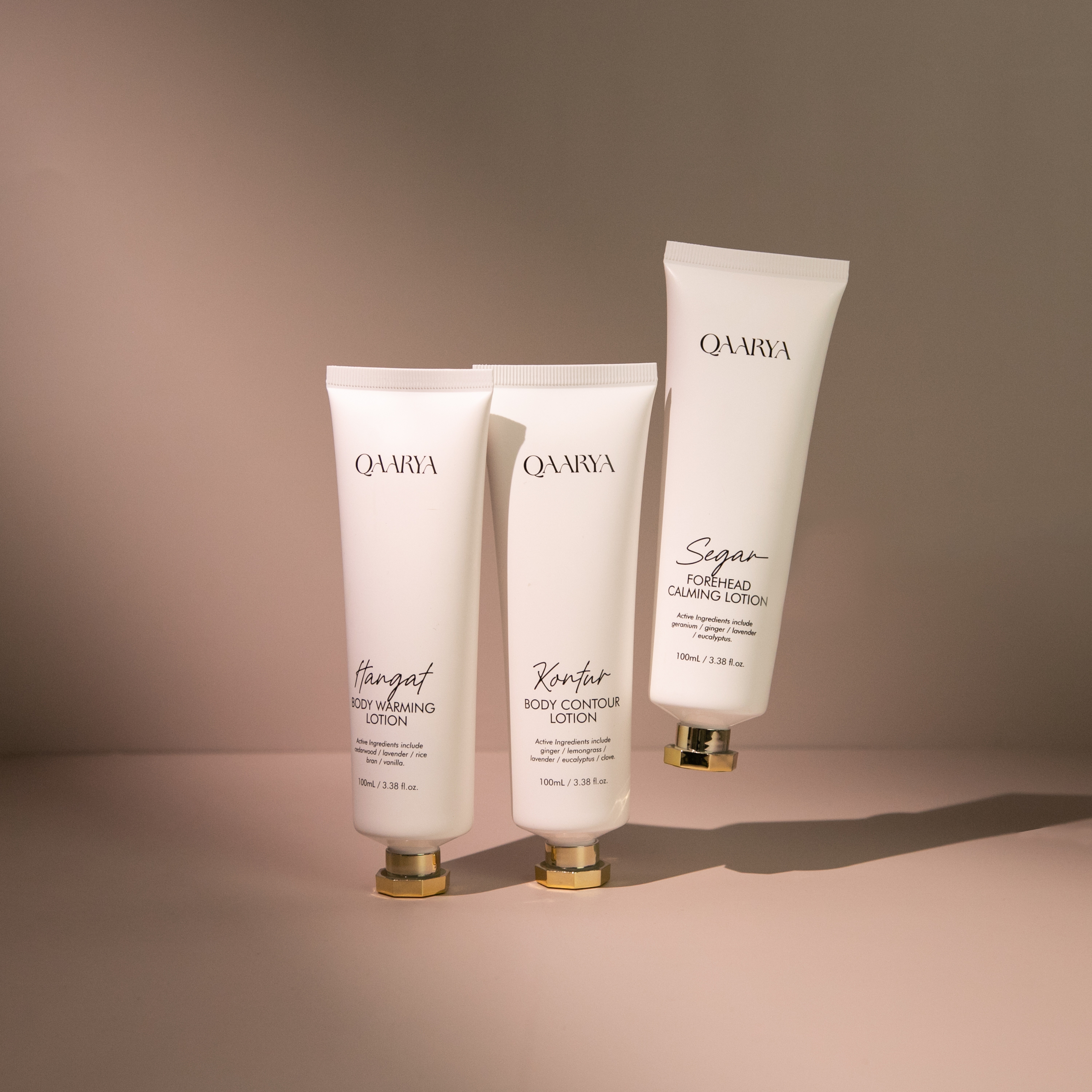 QAARYA is inspired by Malaysia's Confinement care tradition, combining natural ingredients with a modern twist. Specially designed to support women's well-being, Qaarya is not only for new mothers but also anyone looking for comfort. Rooted in the heritage of Malaysian society such as Param, Pilis, and Tapel, Qaarya's products — such as Kontur, Hangat, Segar Lotions and Nyaman Oil — combine proven benefits with modern convenience. Manufactured to rejuvenate and soothe, each product is designed for today's fast-paced lifestyle with stylish and easy-to-carry packaging, combining elegance and practicality. Whether you're treating postpartum recovery or relieving everyday pains, Qaarya provides the best care tailored for all, bringing the wisdom of the ancients to modern well-being.